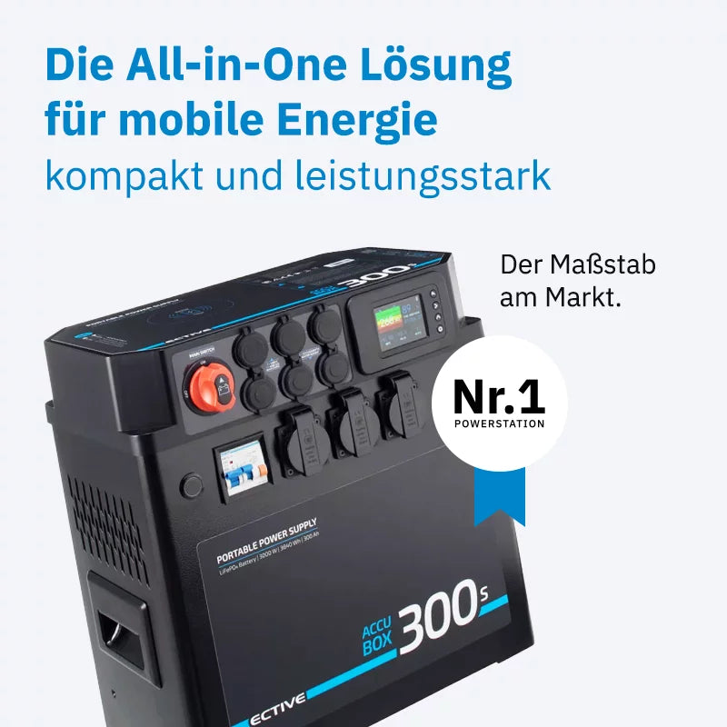 Die AccuBox 300s ist eine vollständig ausgestattete Powerstation für alle, die Strom brauchen – mobil, zuverlässig und ohne technische Hürden. Als einzige Powerstation auf dem deutschen Markt mit integriertem Ladebooster kann sie selbst während der Fahrt effizient über die Lichtmaschine geladen werden – ganz ohne Zusatzgerät. Dazu arbeitet sie selbst bei hoher Belastung extrem leise und stört weder im Camper noch auf dem Boot. Das System ist sofort einsatzbereit, da alle Lade- und Schutzfunktionen integriert sind. Ob im Camper Van, Wohnmobil, Wohnwagen oder auf dem Boot – die AccuBox macht autarke Energieversorgung einfacher und komfortabler denn je.