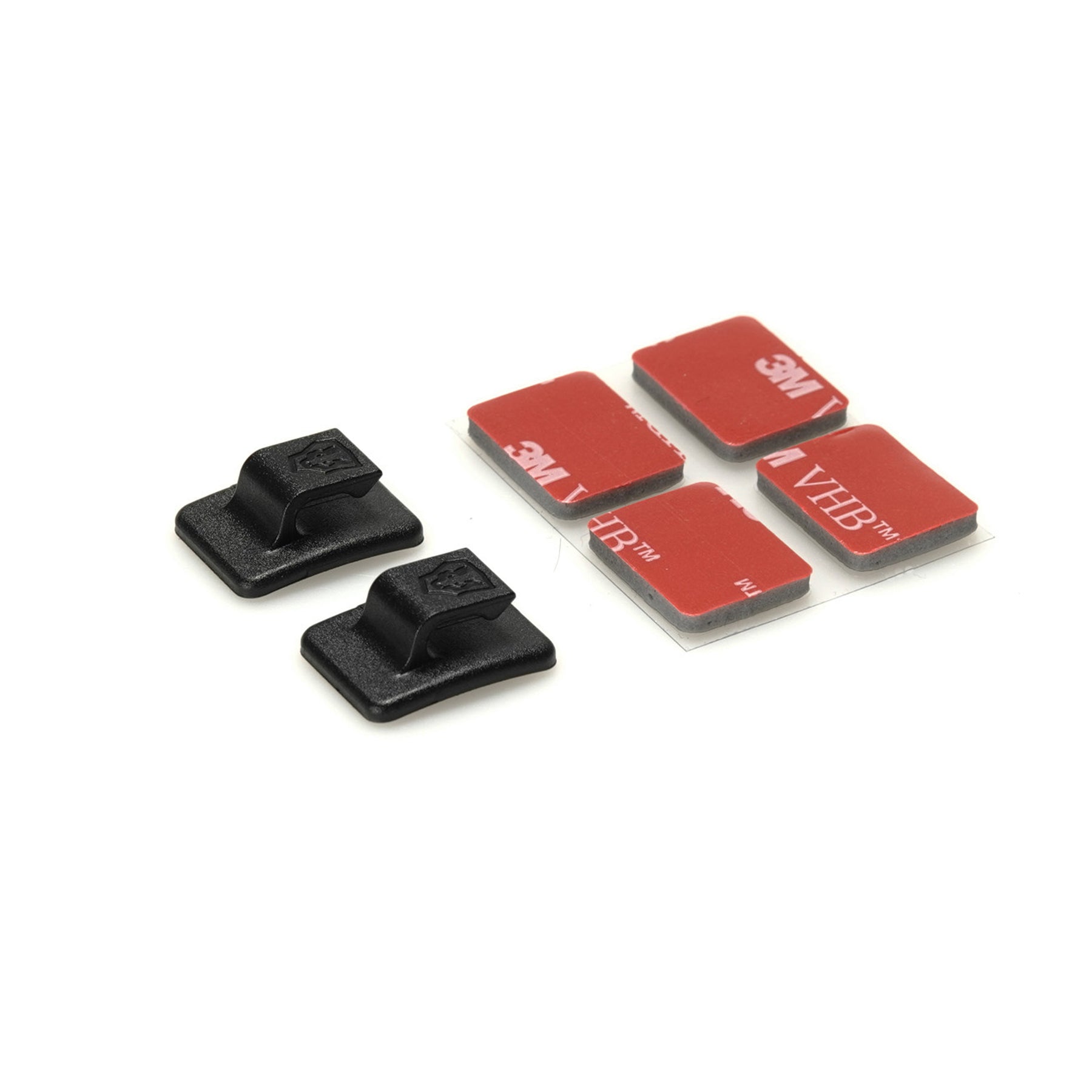 Kabelführungen mit Klebepad zur Fixierung des Lampenkabels am Helm. Durch das softe Klebepad lässt sie sich sowohl auf geraden als auch an leicht gewölbten Flächen anbringen.