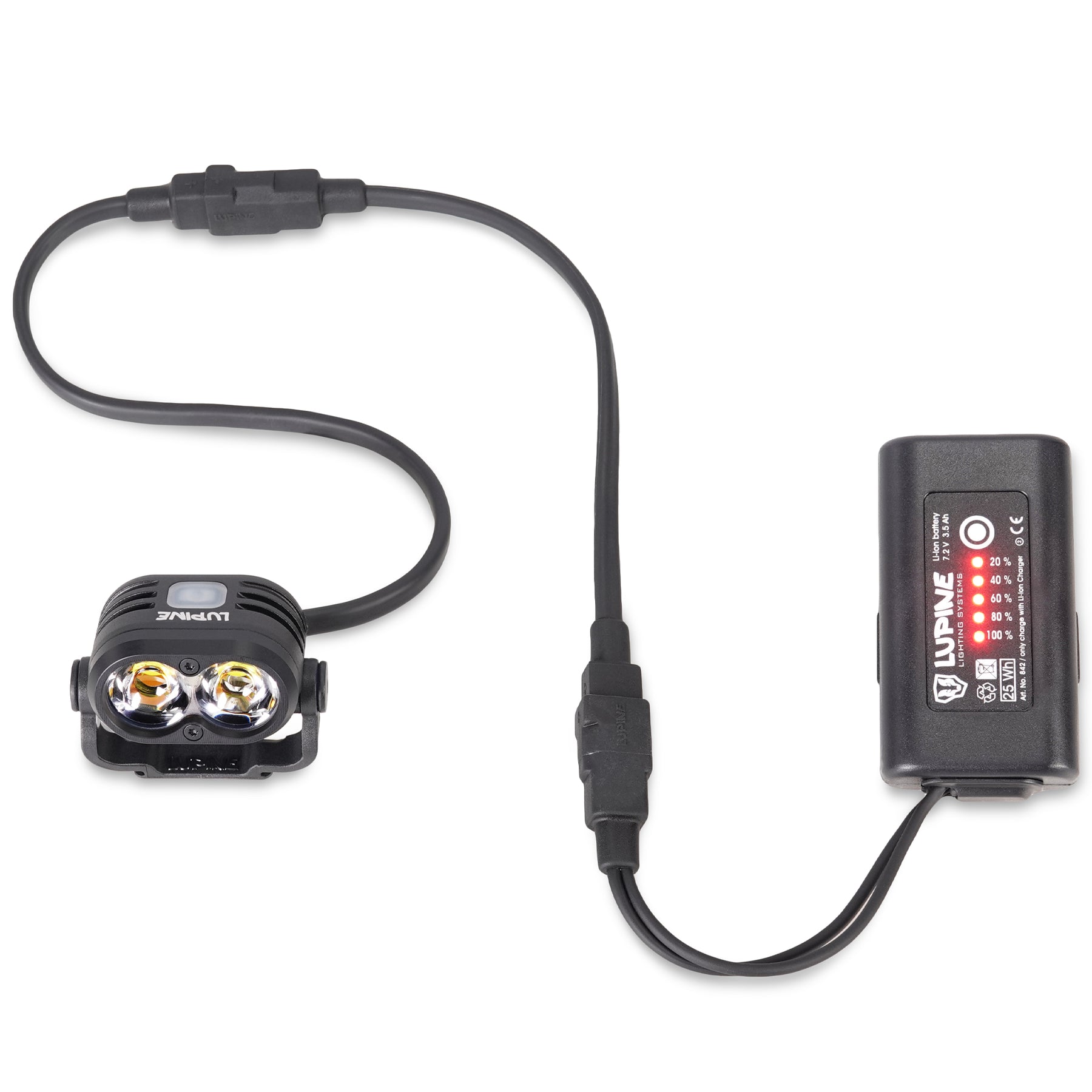 Verlängerungskabel in den Längen 20cm/30cm/40cm/50cm/60cm/120cm für alle Lampentypen außer Alpha. Wähle deine individuelle Verlängerung und verstaue deinen Akku im Rucksack.
