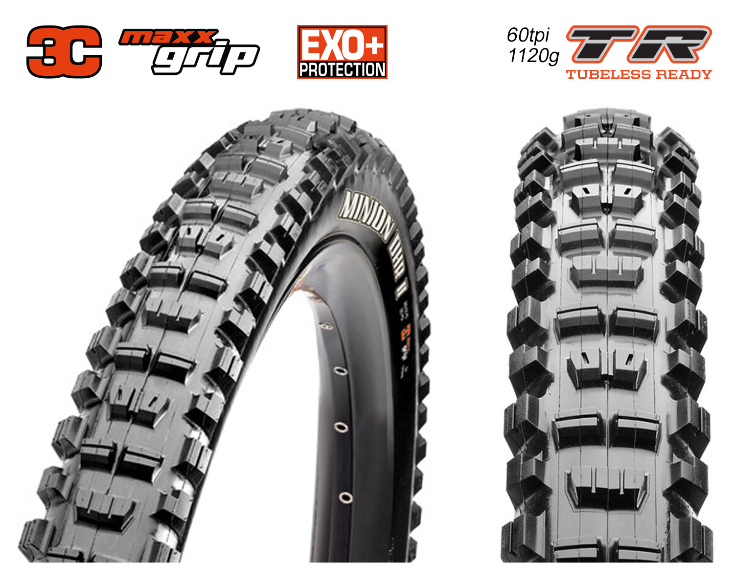 Für optimalen Seitenhalt sorgen große abgestützte Seitenstollen während die quer angeordneten Mittelstollen maximale Bremstraktion ermöglichen. Der Minion DHR II ist unser Do-it-all-and-everywhere Gravity-Reifen, normalerweise am Hinterrad- der auch als Vorderreifen sehr gut funktioniert! Double Down (DD) Die DD Karkasse besteht aus zwei 120 TPI Karkassenlagen, die duch eine Butyl Einlage verstärkt sind. Wide Trail (WT) Reifen sind für eine innere Felgenbreite von 35mm optimiert, funktionieren aber ausgezeichnet auf allen Felgen mit einem Innenmaß von 30-40mm.