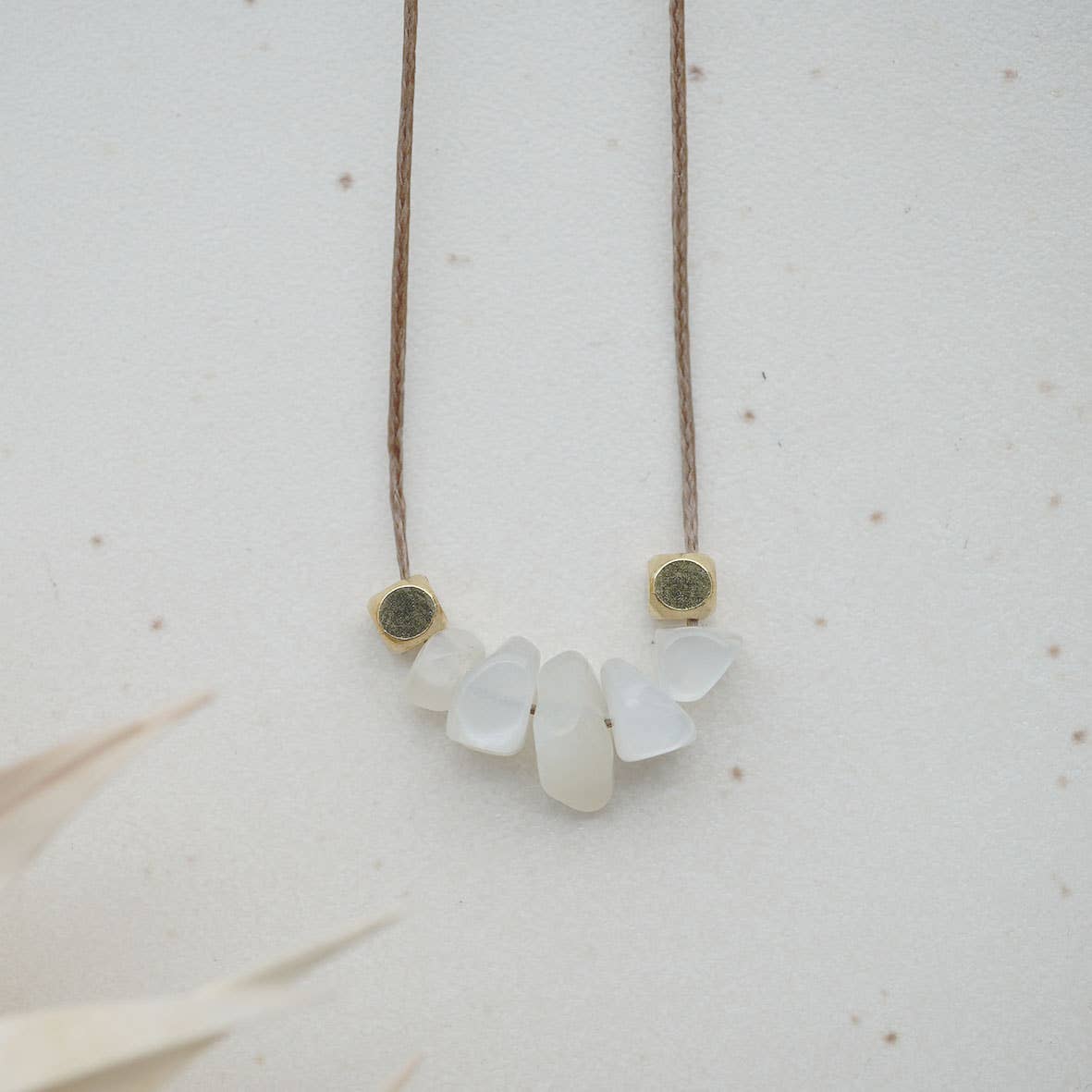 Feine Mondsteine und Messing schmücken die Kollektion LILLA.